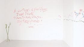 A few things I want to share with you, my Paris friends, Jonas Mekas exhibition, 2009. Photo: Laura Morsh-Kihn